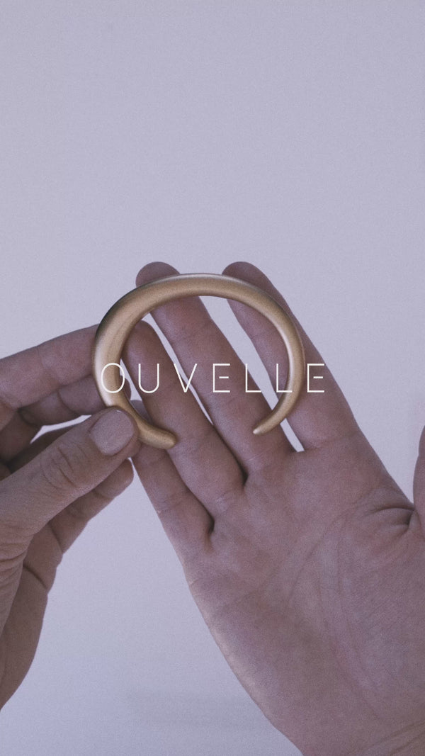 A bold, sculptural bangle echoes the form of an egg in its rounded, tapering silhouette and generous arc. Open at the base, it’s made for a close, secure fit - designed to sit confidently on the wrist and be worn every day.
