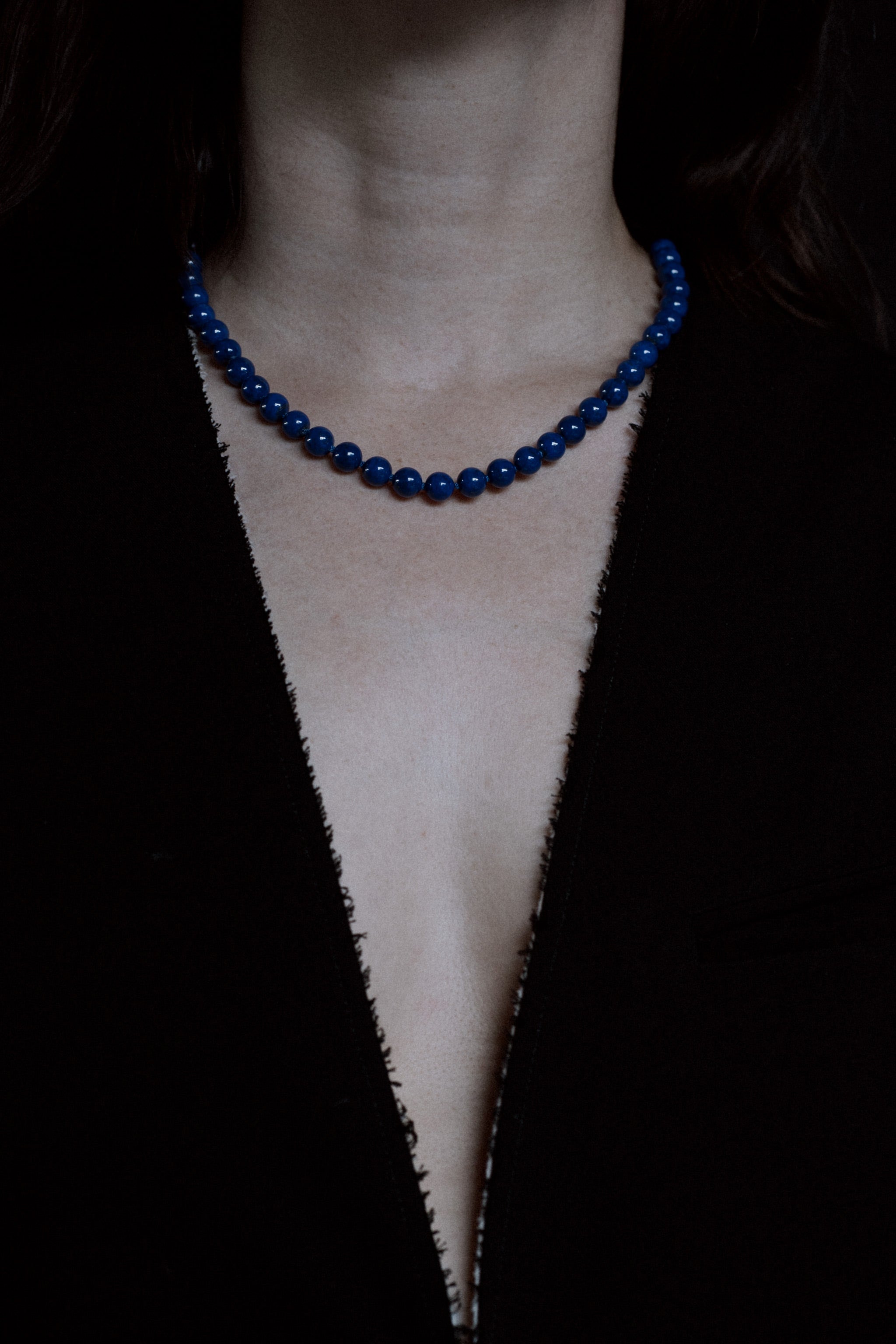 A slimmer version of the Modern Malachite Lapis Bold Set, deep indigo blue Lapis Lazuli, naturally flecked with golden pyrite, are strung on a silk cord to create a rich, textural strand. Sterling silver magnetic clasps blend seamlessly and connect with ease - allowing the piece to be worn in multiple ways, on its own or with other Modern Matriarch sets to mix color, texture, and length.